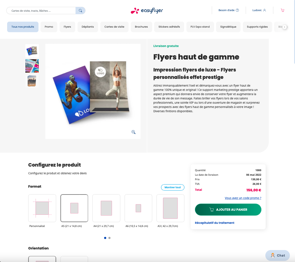 Décidément, c’est le grand ripolinage de printemps sur les sites d’imprimerie en ligne 😉 Dernière plateforme en date à avoir revampé son site : Easyflyer. Dans un email envoyé hier à ces clients, Easyflyer annonce un tout nouveau site : le design est beaucoup plus « sage » et épuré, mais avec peut-être une perte de l’ADN de la marque (ce n’est que mon avis). Basé sur un configurateur « one-page », le process de commande est plus rapide.